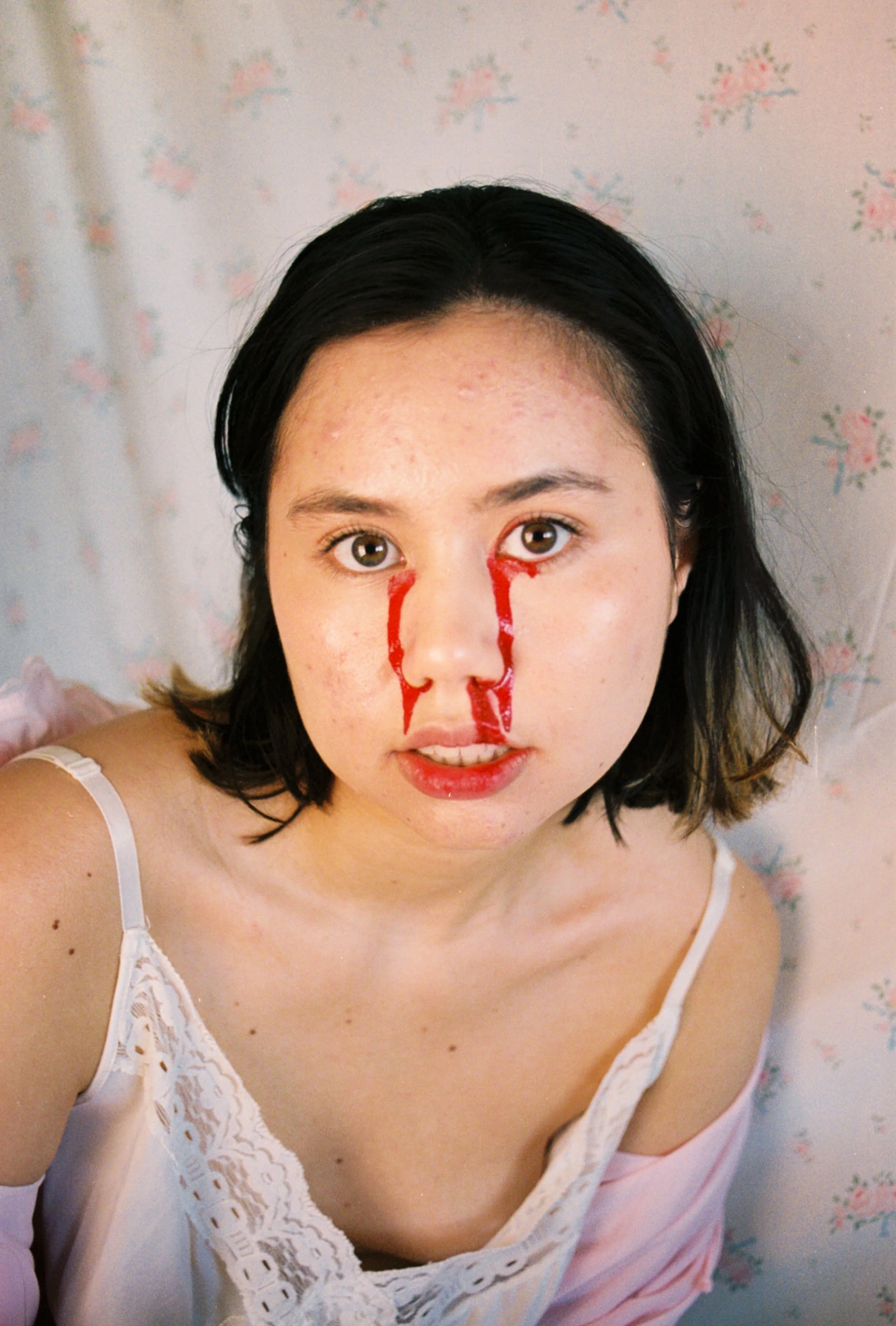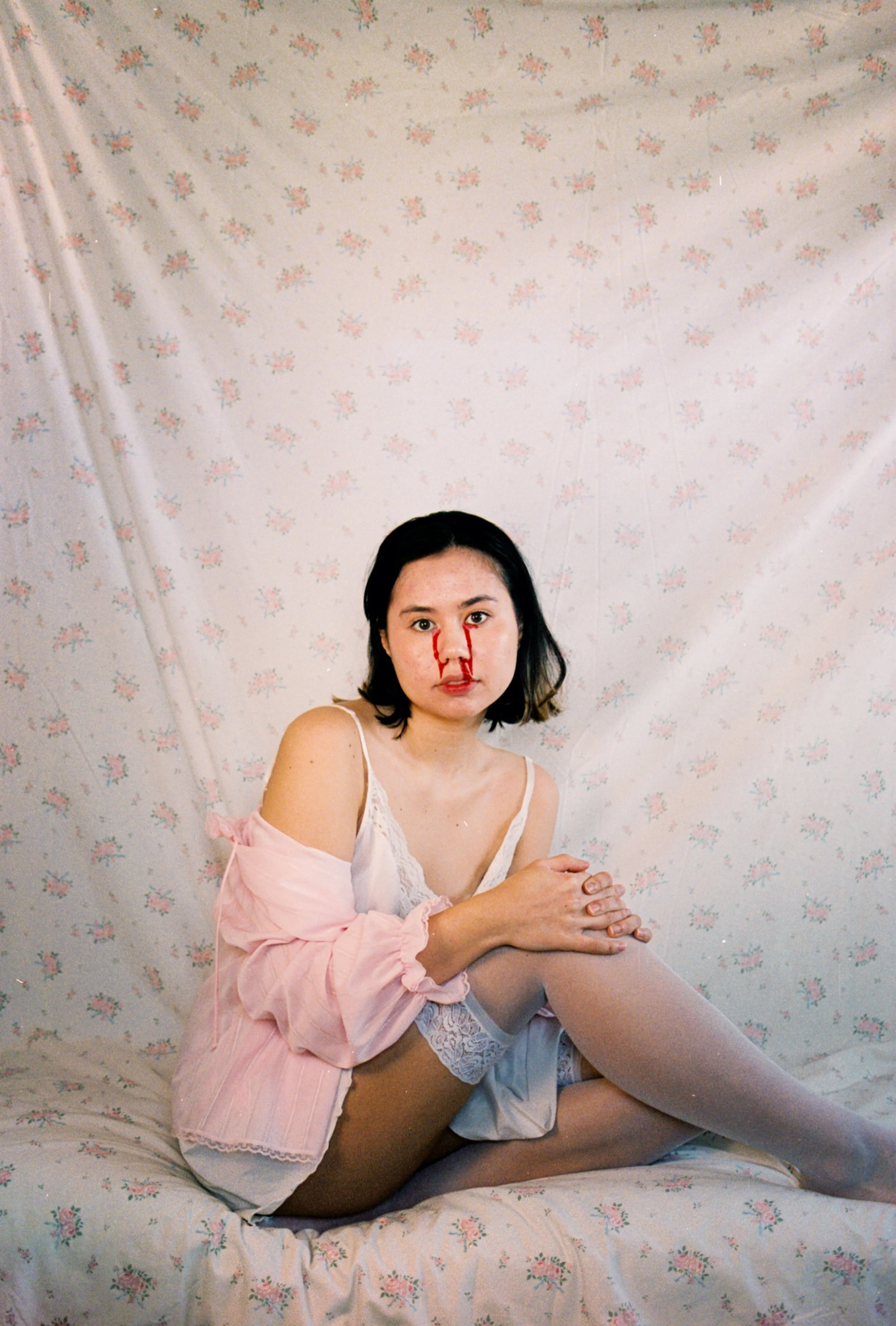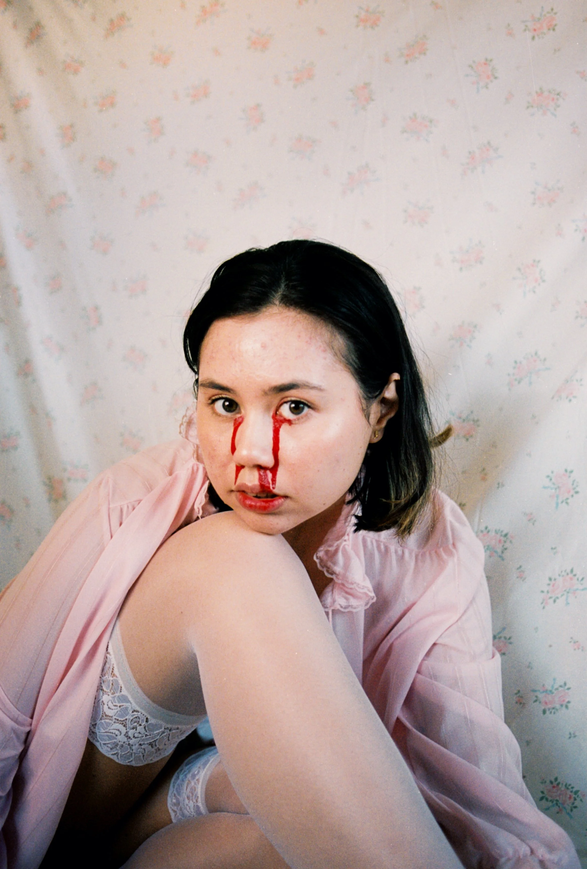 “Soiled Volume 1: Pure of Heart” is a photo series inspired by concepts of “purity” and the ways it can be disrupted. The grotesque subject matter of the project playfully pokes at the idea of a woman’s blood creating a cast of shame.