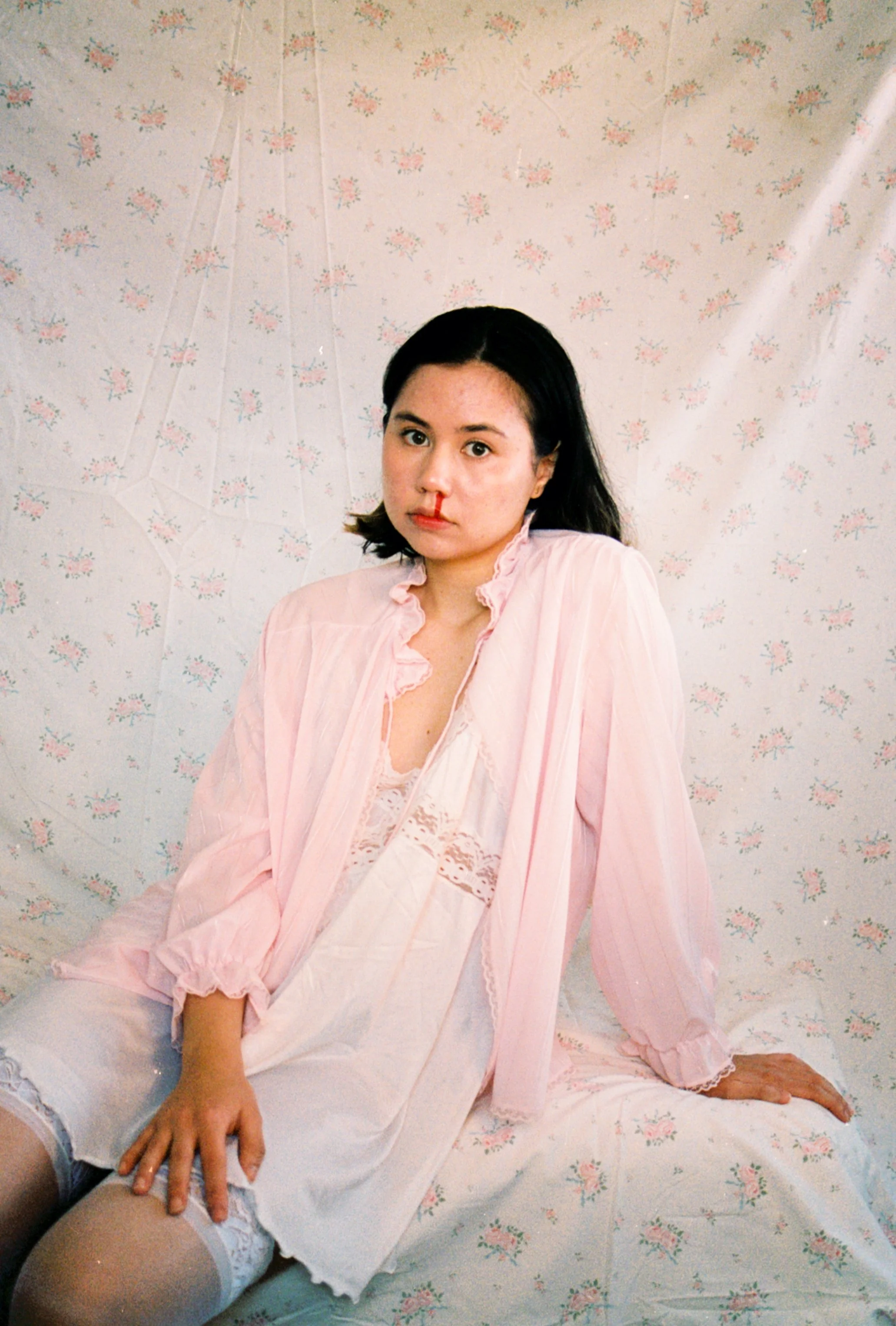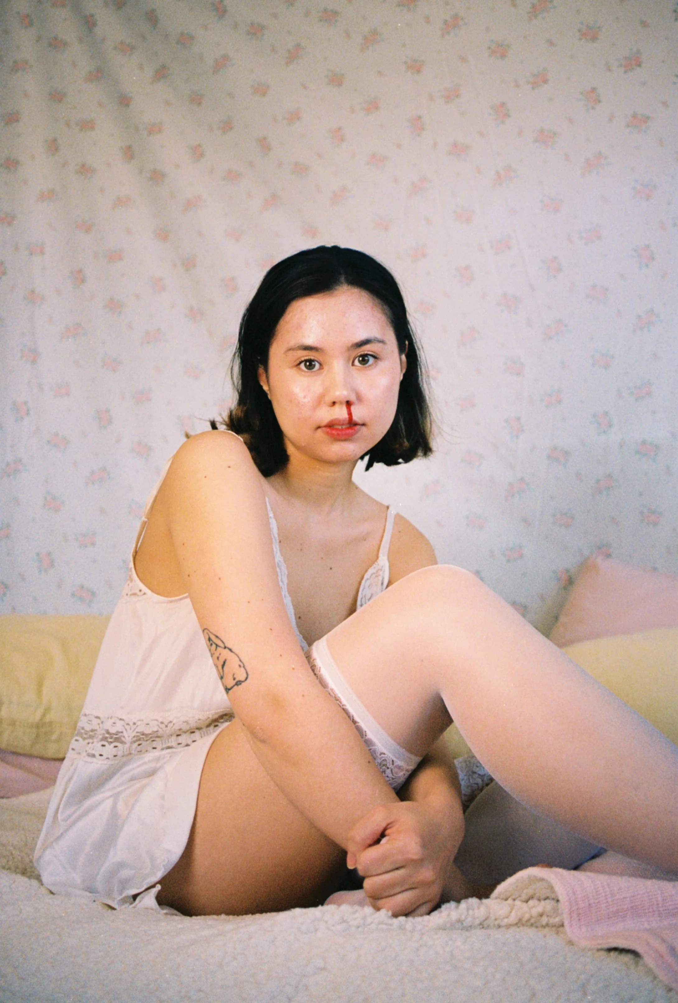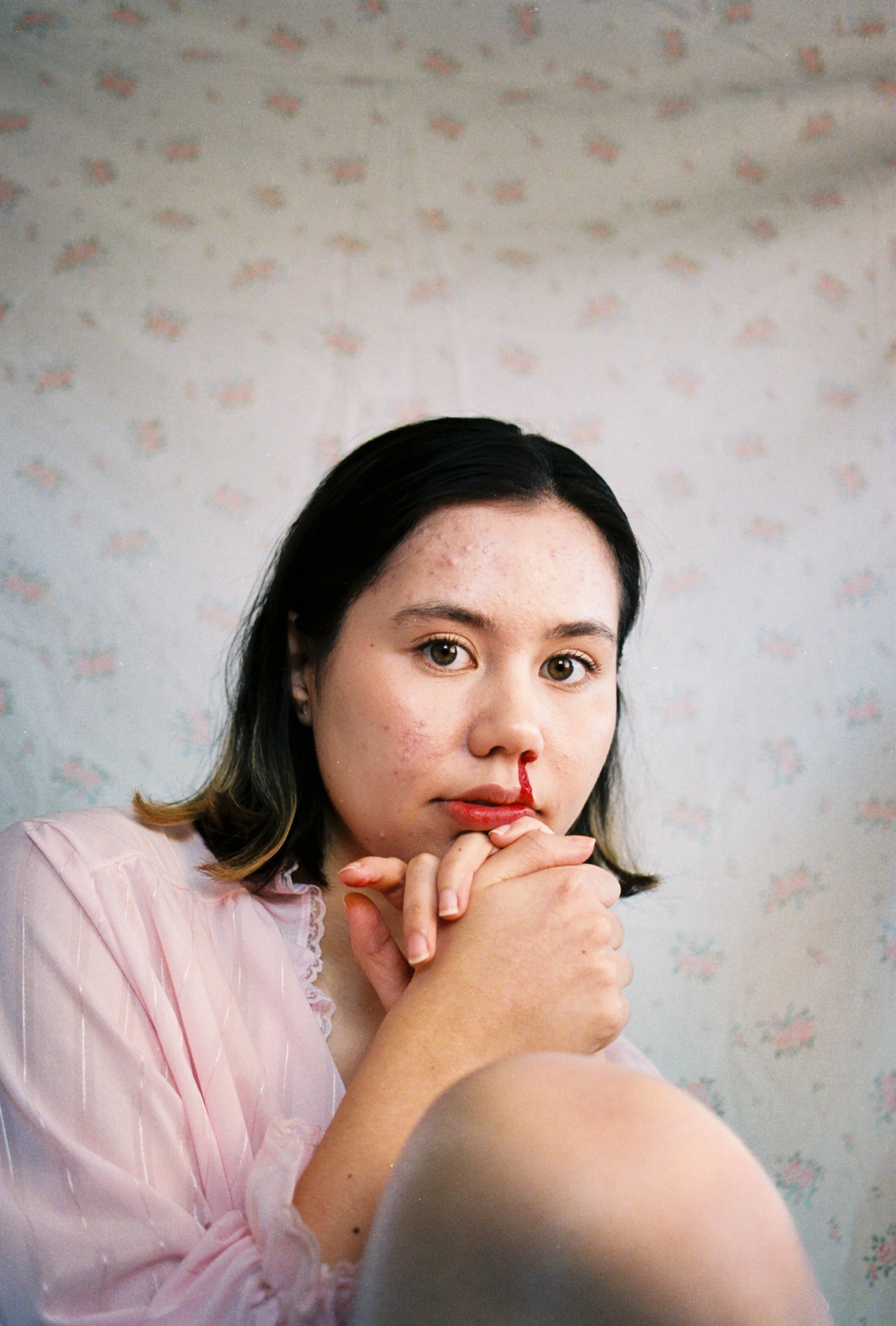 “Soiled Volume 1: Pure of Heart” is a photo series inspired by concepts of “purity” and the ways it can be disrupted. The grotesque subject matter of the project playfully pokes at the idea of a woman’s blood creating a cast of shame.